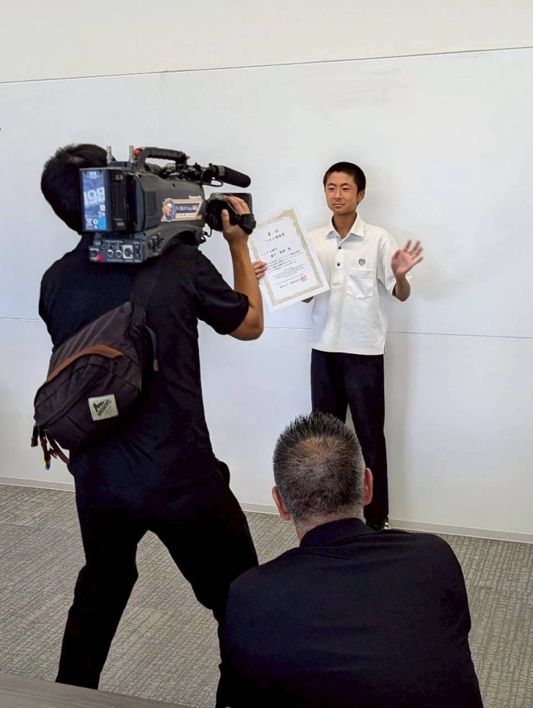 2025.8.28 嘉麻市長表敬訪問 2025年8月29日 4:53 全国大会での受賞報告のため、嘉麻市長を表敬訪問させて頂きました♪ 当日は、読売新聞・西日本新聞・嘉麻市の広報誌編集部・ケーブルテレビの方々にも取材いただき、生徒たちは全国大会の感想や受賞の喜びをそれぞれインタビューで伝えることができました。 市長からは「来年はさらに上の賞を目指して、ご家族への感謝を忘れずに頑張ってください」と温かい励ましのお言葉をいただきました。 生徒たちにとって大変貴重な経験となり、今後の成長にもつながる時間となりました😊